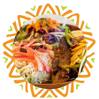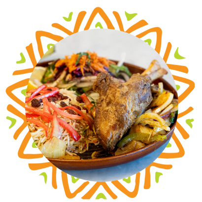 Served with slow cooked lamb shank, quarter chicken, beef suqaar & 3 sides (Rice or Spaghetti)